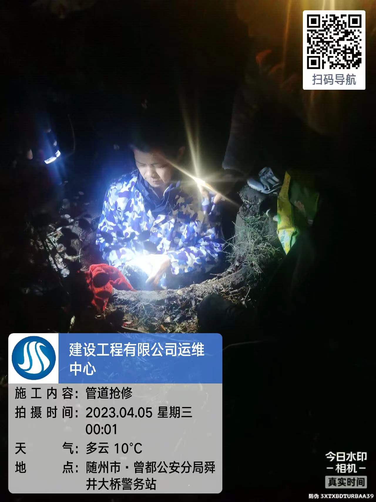 夜幕里,在探照燈燈光的照射下,為盡快修復(fù)供水管道,縮短停水時(shí)間,敲、拆、補(bǔ)、焊、聽(tīng)......搶修隊(duì)伍一刻不停,緊張地忙碌著。夜晚春風(fēng)微涼,他們的衣服被汗水浸透卻也渾然不覺(jué)。經(jīng)過(guò)連續(xù)3個(gè)多小時(shí)的奮戰(zhàn),搶修人員終于在翌日凌晨三點(diǎn)半順利修復(fù)了破損管道,恢復(fù)了通水,圓滿完成了搶修任務(wù)!
