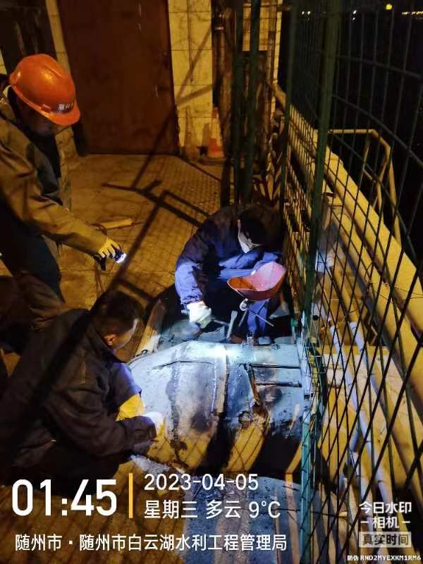 4月4日,水務(wù)集團(tuán)接到一條熱線工單,反映位于白云湖大壩舜井大橋路段處一根DN700的主供水管網(wǎng)破裂需盡快修復(fù)。盡管已是夜間,水務(wù)集團(tuán)維修人員仍火速趕至現(xiàn)場(chǎng),當(dāng)即確定漏水管線影響范圍,及時(shí)關(guān)閉閥門(mén)并向受影響小區(qū)發(fā)布停水通知。