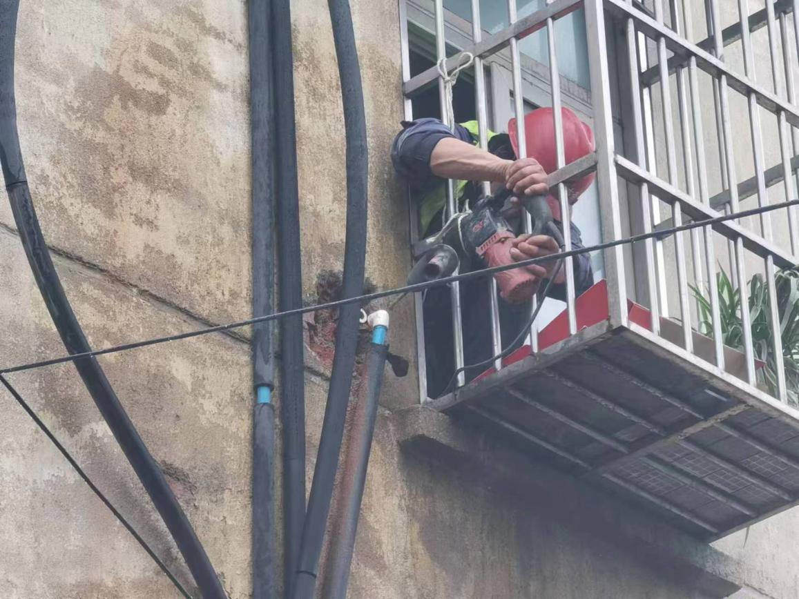 “這里水管漏了,外面的墻都打濕了,麻煩你們快來(lái)看看啊!”3月20日上午8點(diǎn)30分,建設(shè)工程公司接到市民的求助電話,稱(chēng)他家墻外有根水管在向外冒水。運(yùn)維中心牽頭人張遠(yuǎn)燈立即安排維修人員第一時(shí)間趕往現(xiàn)場(chǎng)。經(jīng)過(guò)詢問(wèn)和現(xiàn)場(chǎng)查看后,發(fā)現(xiàn)事故原因是2樓外墻進(jìn)屋處彎頭漏水,但該項(xiàng)維修內(nèi)容本不屬于公司的維修范疇。維修人員看到無(wú)助的老人,便毫不猶豫地爬上2樓陽(yáng)臺(tái),在狹窄的空間內(nèi)艱難地為老人更換破損管件。雖然是用戶房屋內(nèi)部管道漏水,水務(wù)人本著想用戶所想,急用戶所急的服務(wù)精神,不計(jì)較、不推諉的幫助用戶及時(shí)解決漏水難題。