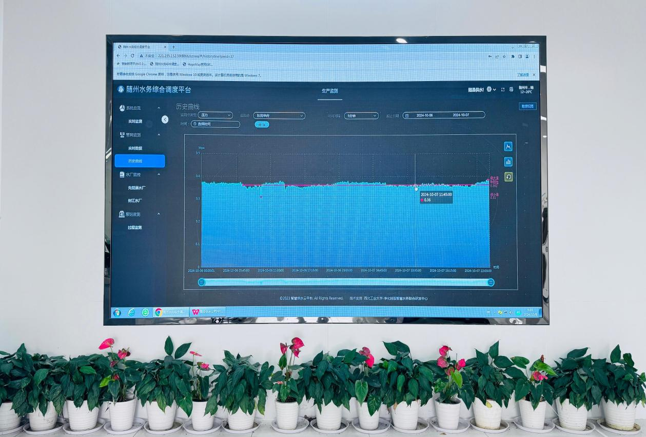 在隨州市水務(wù)集團(tuán)隨縣供水公司的大屏幕上實(shí)時(shí)顯示著各個(gè)區(qū)域的供水壓力、流量等數(shù)據(jù)。值班人員全神貫注地盯著屏幕,密切關(guān)注著供水動(dòng)態(tài)。他們深知,任何一個(gè)數(shù)據(jù)的異常都可能影響到千家萬(wàn)戶的用水安全。一旦發(fā)現(xiàn)問(wèn)題,他們會(huì)迅速采取措施,確保供水系統(tǒng)的穩(wěn)定運(yùn)行。
