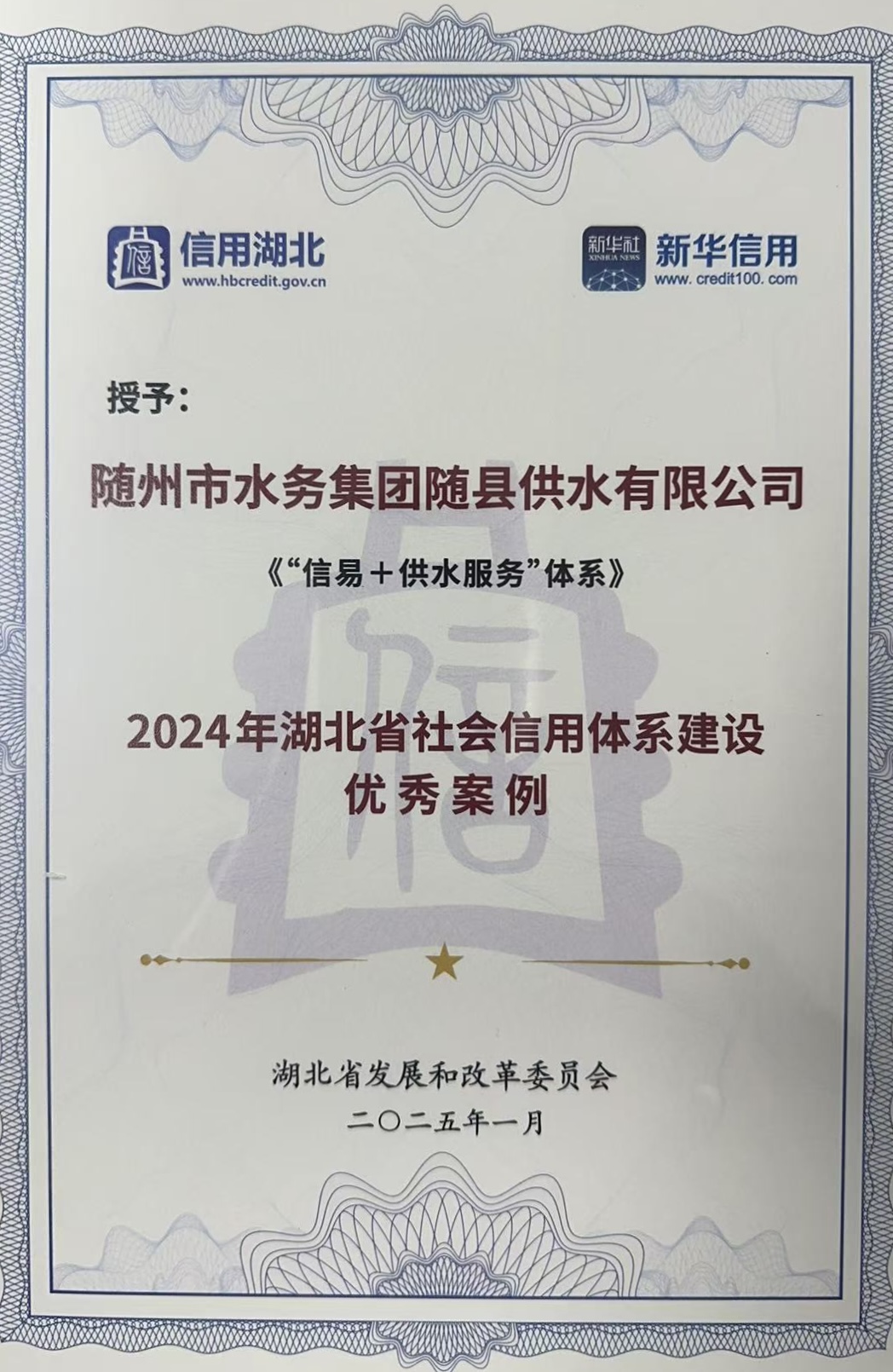 此次獲獎(jiǎng),充分彰顯了隨州市水務(wù)集團(tuán)有限公司在社會(huì)信用體系建設(shè)領(lǐng)域的積極探索與卓越成就。展望未來(lái),隨州市水務(wù)集團(tuán)將以此次獲獎(jiǎng)為全新起點(diǎn),進(jìn)一步完善“信易+供水服務(wù)”體系,持續(xù)拓展信用服務(wù)的應(yīng)用場(chǎng)景,為推動(dòng)社會(huì)信用體系建設(shè)與優(yōu)化營(yíng)商環(huán)境貢獻(xiàn)更多力量。