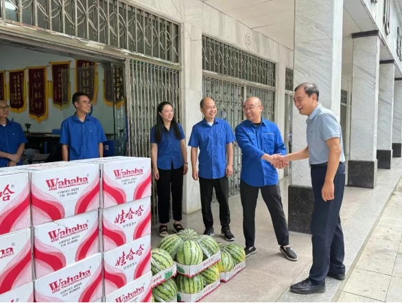 7月11日上午,水務(wù)集團(tuán)“夏日送清涼”慰問(wèn)活動(dòng)溫情啟動(dòng),集團(tuán)黨總支副書(shū)記、總經(jīng)理嚴(yán)賢江帶隊(duì),先后奔赴城市供水公司、建設(shè)工程公司、隨縣供水公司、水質(zhì)檢測(cè)公司、康潤(rùn)實(shí)業(yè)公司、封江水廠、先覺(jué)廟水廠、紅旗水廠、封江水廠排水工程項(xiàng)目部,為在高溫下堅(jiān)守崗位的職工們送去了濃濃的關(guān)懷與清涼。