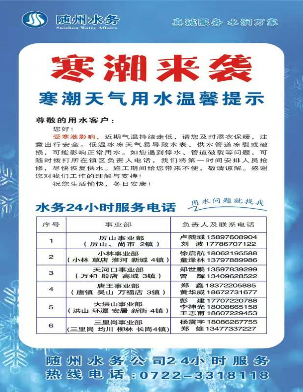近期,我市持續(xù)遭遇低溫寒潮,嚴寒天氣對城鄉(xiāng)供水管網(wǎng)及設施構成嚴峻挑戰(zhàn),水務集團隨縣供水公司迅速激活應急響應機制,提前部署筑防線、精準服務解民憂、全員堅守保暢通的硬核舉措,切實保障居民冬季用水無憂。